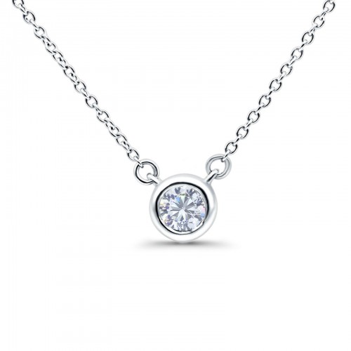 14K White Gold 0.06ct Round Shape Diamond Bezel Solitaire Pendant Chain Necklace 18″ Long