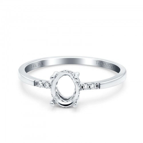 14K White Gold 0.07ct Oval 8mmx6mm G SI Semi Mount Diamond Engagement Wedding Ring Size 6.5
