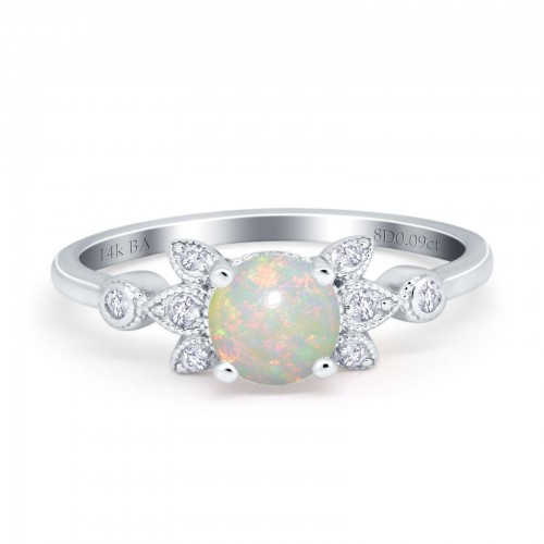 14K White Gold 0.09ct Round 7mm G SI Natural White Opal Diamond Engagement Wedding Ring Size 6.5