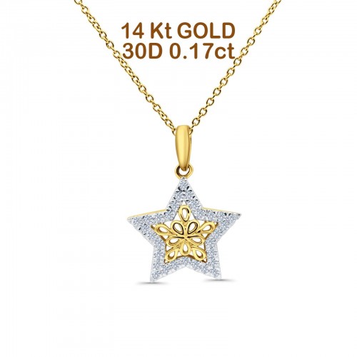 14K White Gold 0.09ct Round Shape Diamond Antique Flower Pendant Chain Necklace 18″ Long