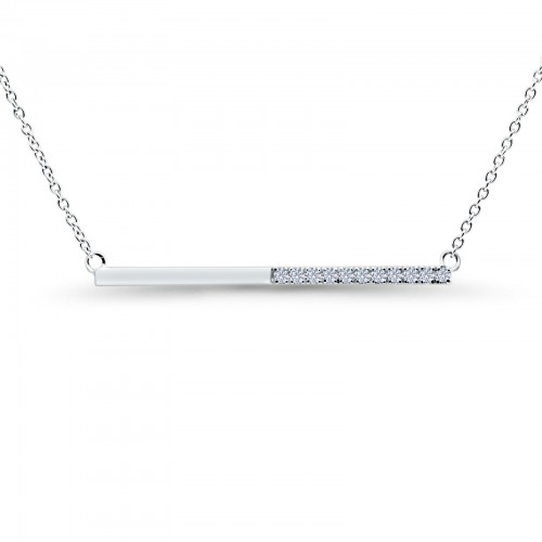 14K White Gold 0.09ct Round Shape Diamond Bar Pendant Chain Necklace 18″ Long