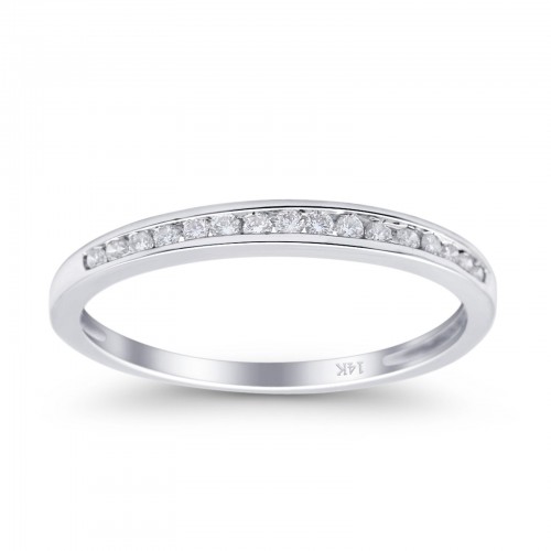 14K White Gold 0.13ct Round 3mm G SI Half Eternity Diamond Engagement Wedding Ring Size 6.5