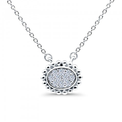 14K White Gold 0.13ct Round Shape Diamond Solitaire Pendant Chain Necklace 18″ Long