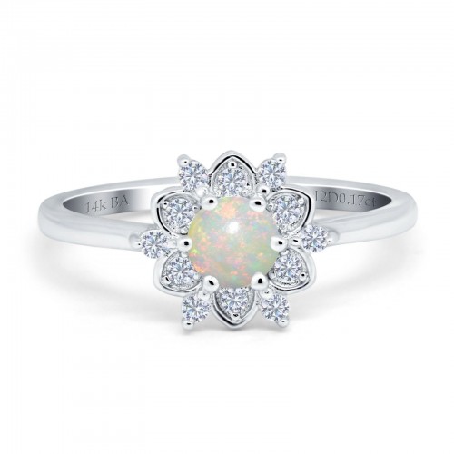 14K White Gold 0.17ct Round 6mm G SI Natural White Opal Diamond Engagement Wedding Ring Size 6.5