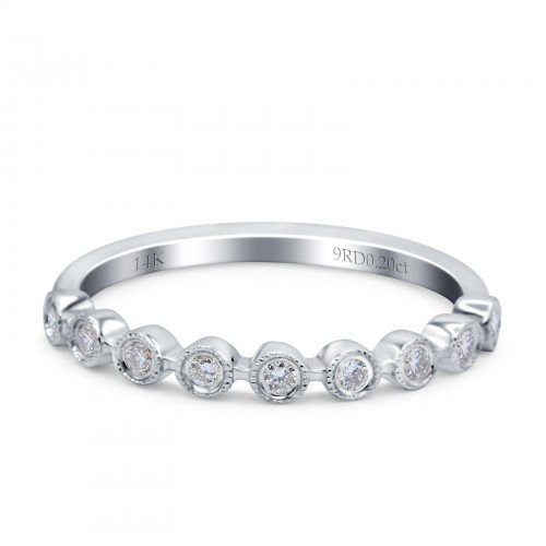 14K White Gold 0.20ct Round 3mm G SI Half Eternity Diamond Bands Engagement Wedding Ring Size 6.5