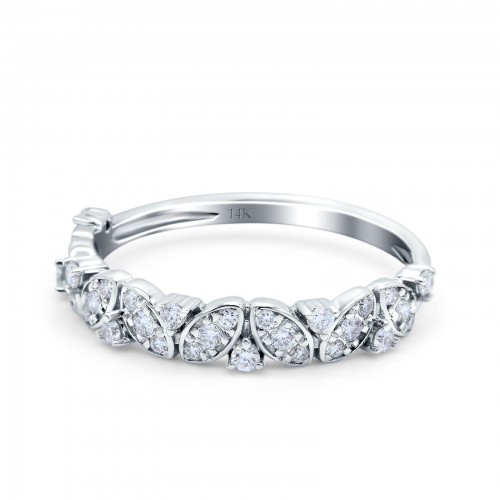 14K White Gold 0.23ct Marquise & Round 4.5mm G SI Art Deco Half Eternity Diamond Band Engagement Wedding Ring Size 6.5