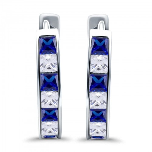 Emerald Cut Halo Hoop Earring Black CZ 925 Sterling Silver 17mm