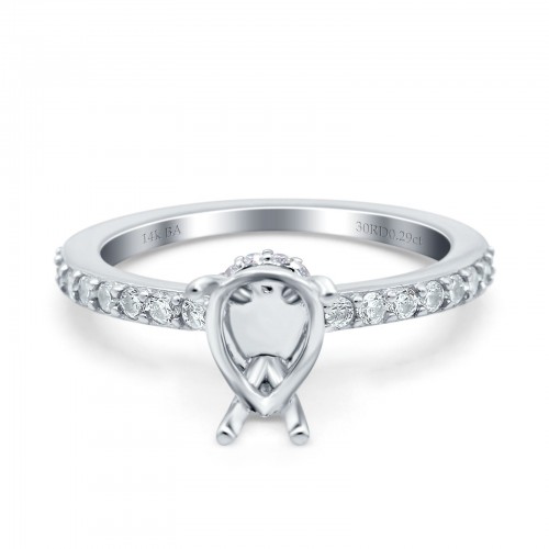 14K White Gold 0.29ct Teardrop Pear Art Deco 8mmx6mm G SI Semi Mount Diamond Engagement Wedding Ring Size 6.5