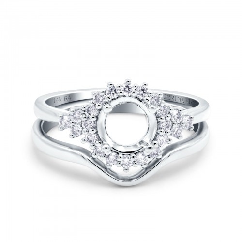14K White Gold 0.31ct Round Two Piece Halo 7mm G SI Semi Mount Diamond Engagement Wedding Ring Size 6.5