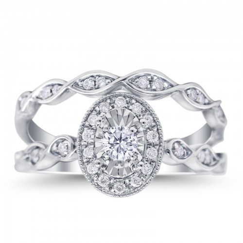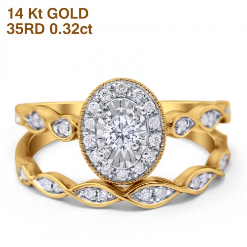 14K White Gold 0.32ct Oval Shape 10mm G SI Diamond Engagement Bridal Set Wedding Ring Size 6.5