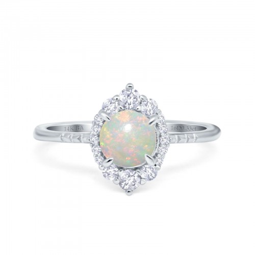 14K White Gold 0.33ct Halo Vintage Round 7mm G SI Natural White Opal Diamond Engagement Wedding Ring Size 6.5