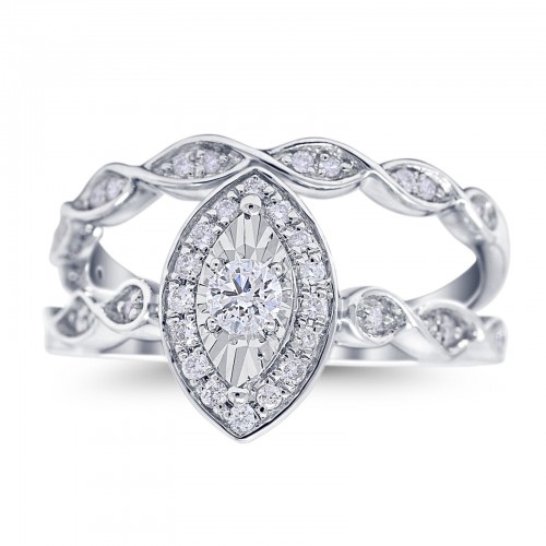 14K White Gold 0.34ct Marquise Shaped 12mm G SI Diamond Engagement Wedding Bridal Set Ring Size 6.5