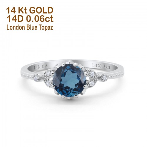 14K White Gold 0.67ct Round Halo 6.5mm G SI Natural Blue Topaz Diamond Engagement Wedding Ring Size 6.5