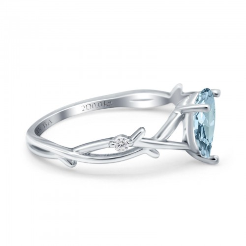 14K White Gold 0.75ct Natural Aquamarine Pear G SI Diamond Engagement Ring Size 6.5