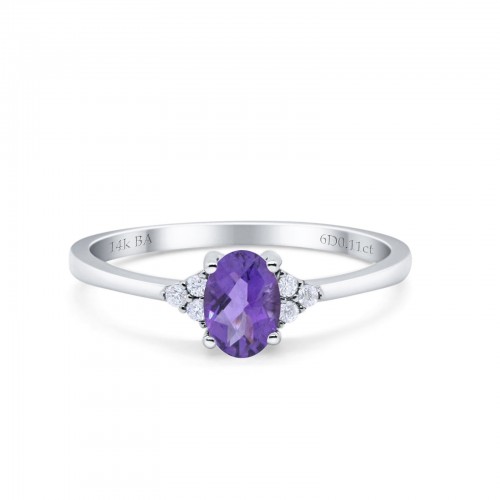 14K White Gold 0.87ct Art Deco Oval 7mmx5mm G SI Natural Amethyst Diamond Engagement Wedding Ring Size 6.5