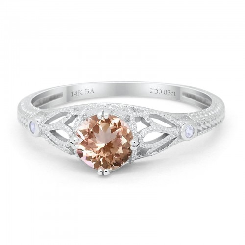 14K White Gold 0.87ct Vintage Design Solitaire Round 6mm G SI Natural Morganite Diamond Engagement Wedding Ring Size 6.5