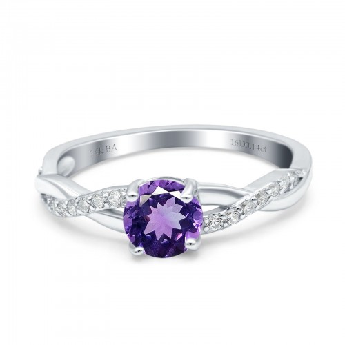 14K White Gold 0.98ct Round Art Deco 6mm G SI Natural Amethyst Diamond Engagement Wedding Ring Size 6.5