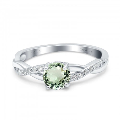 14K White Gold 0.98ct Round Art Deco 6mm G SI Natural Green Amethyst Diamond Engagement Wedding Ring Size 6.5