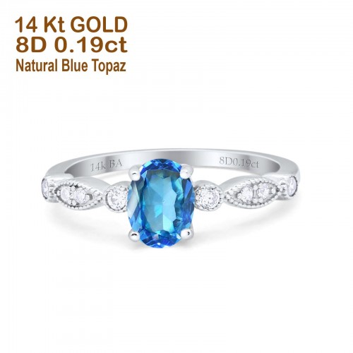 14K White Gold 0.99ct Round Petite Dainty 6mm G SI London Blue Topaz Diamond Engagement Wedding Ring Size 6.5