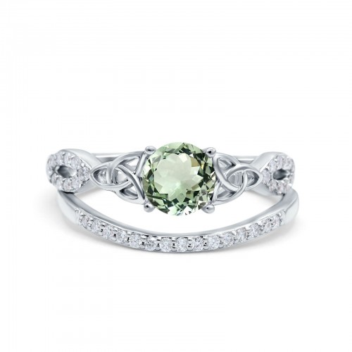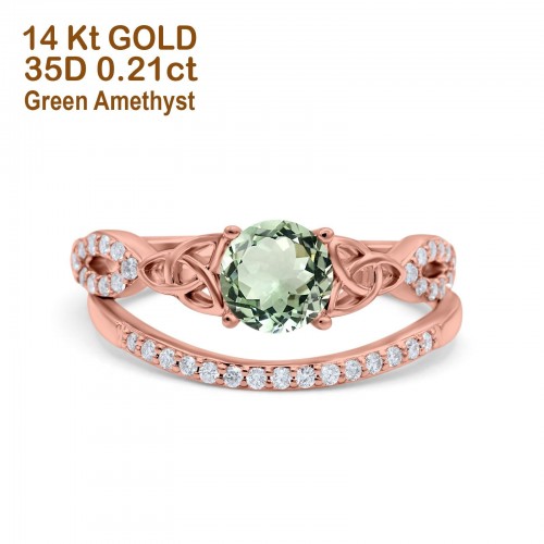 14K White Gold 1.05ct Round 6mm G SI Natural Green Amethyst Diamond Engagement Bridal Wedding Ring Size 6.5