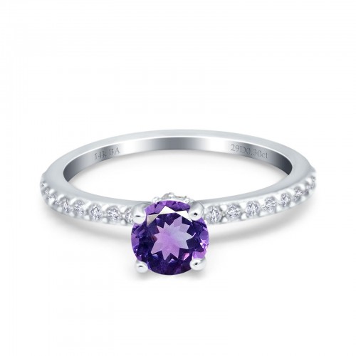 14K White Gold 1.14ct Round Accent Vintage 6mm G SI Natural Amethyst Diamond Engagement Wedding Ring Size 6.5