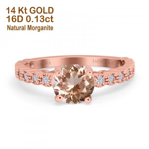 14K White Gold 1.16ct Round 6.5mm G SI Natural Morganite Diamond Engagement Wedding Ring Size 6.5