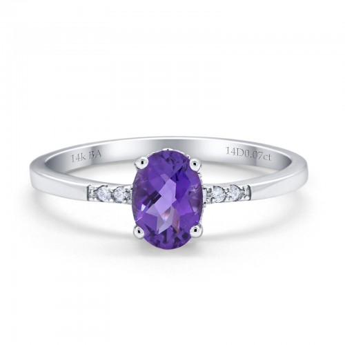 14K White Gold 1.28ct Oval 8mmx6mm G SI Natural Amethyst Diamond Engagement Wedding Ring Size 6.5