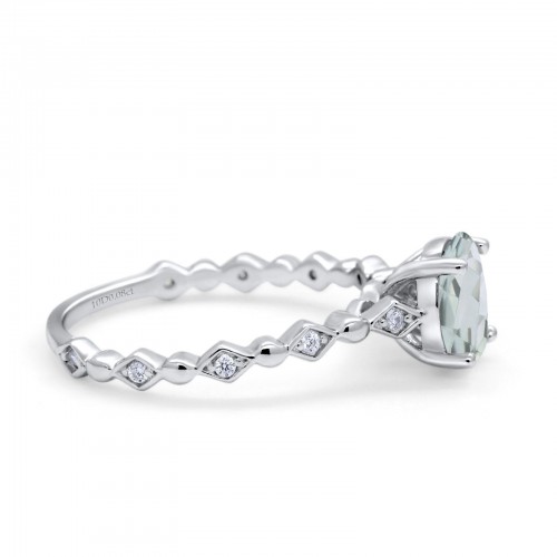 14K White Gold 1.29ct Oval Natural Green Amethyst G SI Diamond Engagement Ring Size 6.5