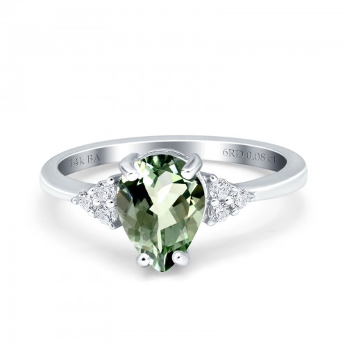 14K White Gold 1.33ct Teardrop Pear 8mmx6mm G SI Natural Green Amethyst Diamond Engagement Wedding Ring Size 6.5