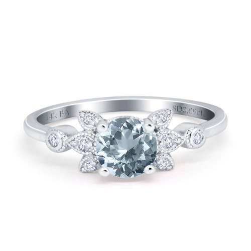 14K White Gold 1.37ct Round 7mm G SI Natural Aquamarine Diamond Engagement Wedding Ring Size 6.5