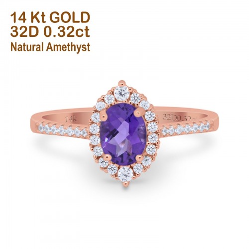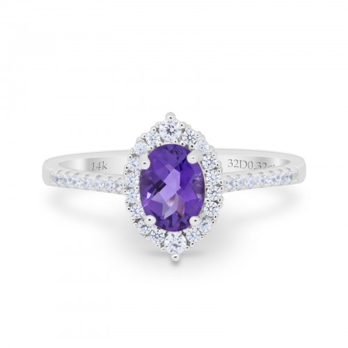 14K White Gold 1.53ct Oval Natural Amethyst G SI Diamond Engagement Ring Size 6.5