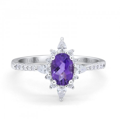 14K White Gold 1.54ct Vintage Oval 8mmx6mm G SI Natural Amethyst Diamond Engagement Wedding Ring Size 6.5