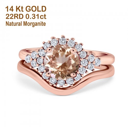 14K White Gold 1.59ct Round Two Piece Halo 7mm G SI Natural Morganite Diamond Engagement Wedding Ring Size 6.5