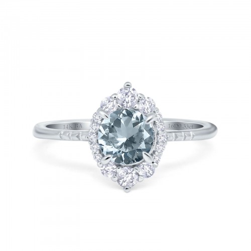 14K White Gold 1.61ct Halo Vintage Round 7mm G SI Natural Aquamarine Diamond Engagement Wedding Ring Size 6.5