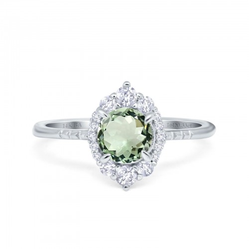 14K White Gold 1.61ct Halo Vintage Round 7mm G SI Natural Green Amethyst Diamond Engagement Wedding Ring Size 6.5
