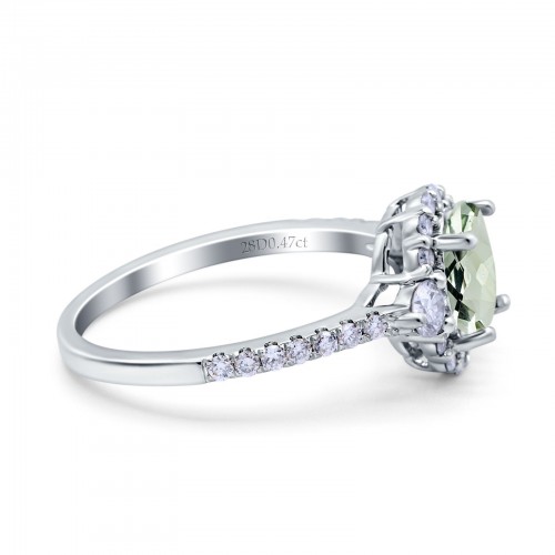 14K White Gold 1.68ct Oval Natural Green Amethyst G SI Diamond Engagement Ring Size 6.5