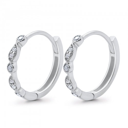 14K White Gold .14ct G SI Antique Style Hoop Huggie Diamond Earrings