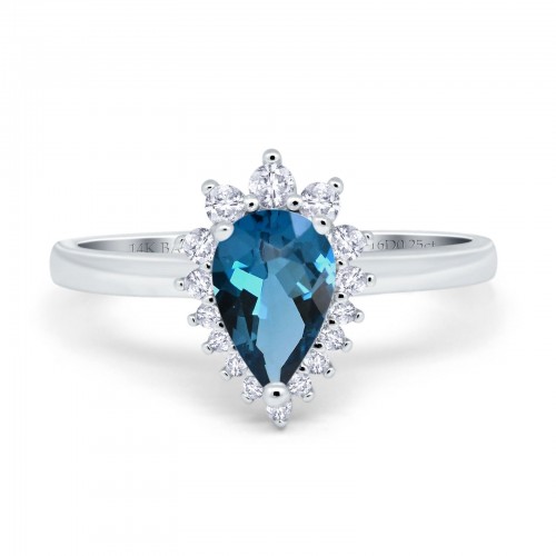 14K White Gold 2.00ct Teardrop Pear 9mmx7mm G SI London Blue Topaz Diamond Engagement Wedding Ring Size 6.5