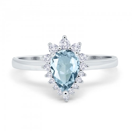 14K White Gold 2.00ct Teardrop Pear 9mmx7mm G SI Natural Aquamarine Diamond Engagement Wedding Ring Size 6.5
