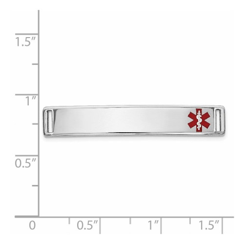 14K White Gold 34x Off-Center Red Epoxy Enameled Medical ID Plate # 817 6mm