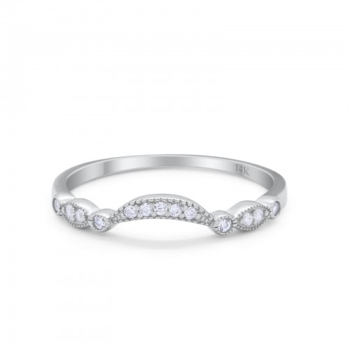 14K White Gold Art Deco Curved Wedding Band Eternity Ring Simulated Cubic Zirconia Size-7