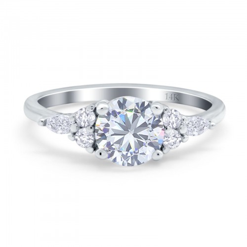 14K White Gold Art Deco Engagement Ring Round Simulated Cubic Zirconia Size-7 14K Gold