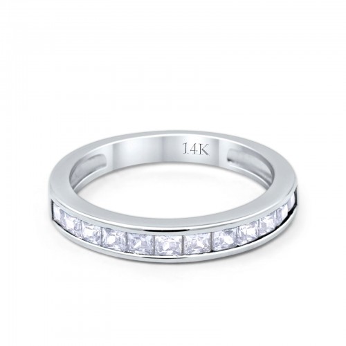 14K White Gold Art Deco Half Eternity Band Wedding Engagement Ring Simulated CZ Size 7