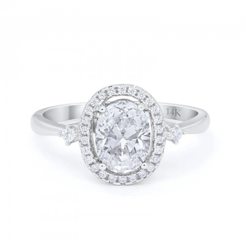 14K White Gold Art Deco Halo Oval Simulated CZ Bridal Wedding Engagement Ring Size 7 14K Gold