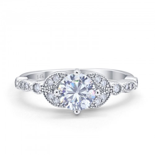 14K White Gold Art Deco Wedding Ring Bridal Round Simulated Cubic Zirconia Size-7