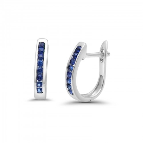 14K White Gold Blue Sapphire 0.12ct Diamond Cross Pendant