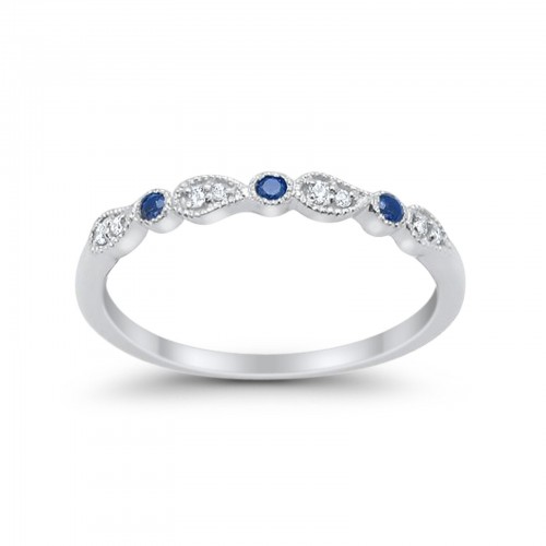 14K White Gold Blue Sapphire .12ct Diamond Eternity Wedding Stacklable Bands