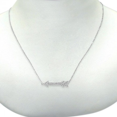 14K White Gold Diamond Arrow .09ct Pendant Necklace 16″+2″ Ext