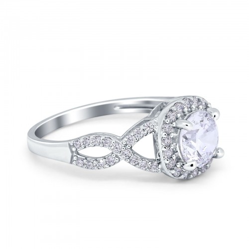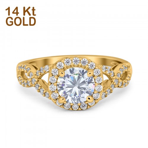 14K White Gold Halo Art Deco Round Engagement Simulated CZ Ring Size 7