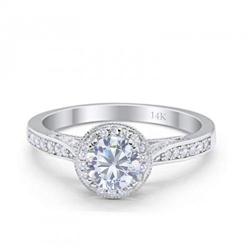 14K White Gold Halo Round Bridal Wedding Engagement Ring Simulated CZ Size-7 14K Gold